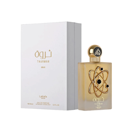 Tharwah Gold de Lattafa Perfumes é um perfume Oriental Floral Feminino. Tharwah Gold foi lançado em 2022. As notas de topo são: Lavanda e Bergamota. As notas de coração são: Flor de Laranjeira e Jasmim Egípcio. As notas de fundo são: Baunilha, Âmbar e Vetiver.